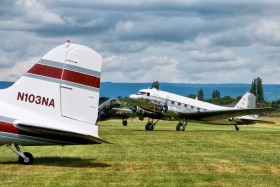 Line-up letových Dakot po prvním bloku letových ukázek (několik hromadných průletů ca. 6 letounů v různých formacích). Toto seřazování se vždy po každém bloku leteckých ukázek změnilo do různých sestav.