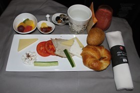 Předkrm ke snídani v business class na lince TK181 IST-MEX-CUN.